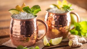 • Add all ingredients to a copper mug filled with ice and stir well
