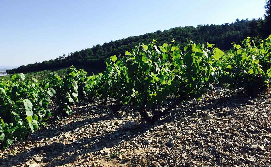 In much of Beaujolais, the vines are “head trained” in a traditional style that originated with the Ancient Egyptians and Romans, called gobelet. It’s called gobelet because the spurs of the vines are pruned from the top (or “head”) and arranged in a circle that resembles a goblet (or chalice). As you mention, the resulting grapevine also looks kind of like a bush, and therefore are frequently referred to as “bush vines” (brilliant, eh?).