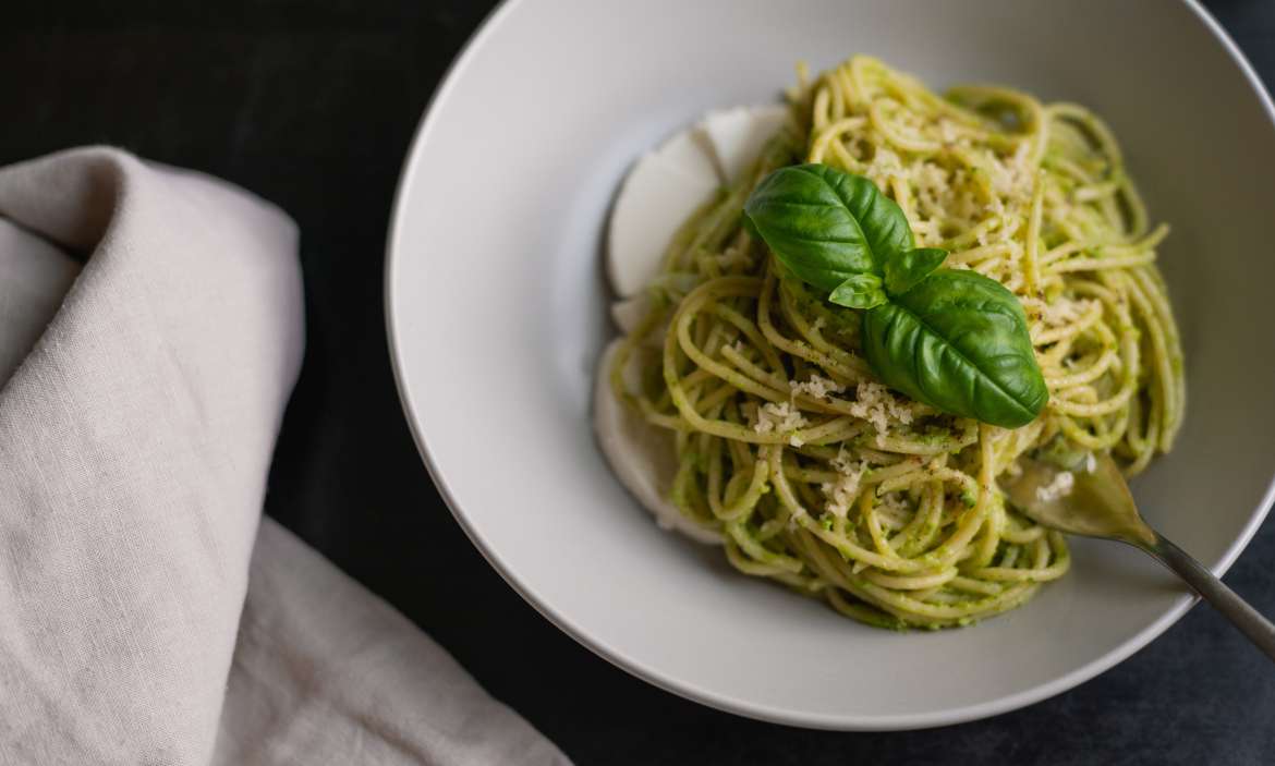 - Pesto is typically eaten with a long, wide noodle in Liguria called trenette. If you can’t find trenette, the next best substitute would be fettucine. Linguine and spaghetti work well too. For this dish, I used bucatini. Ligurians sometimes toss green beans and potatoes into this dish. That is a classic adaptation, but I chose to use the stripped down method for this recipe.