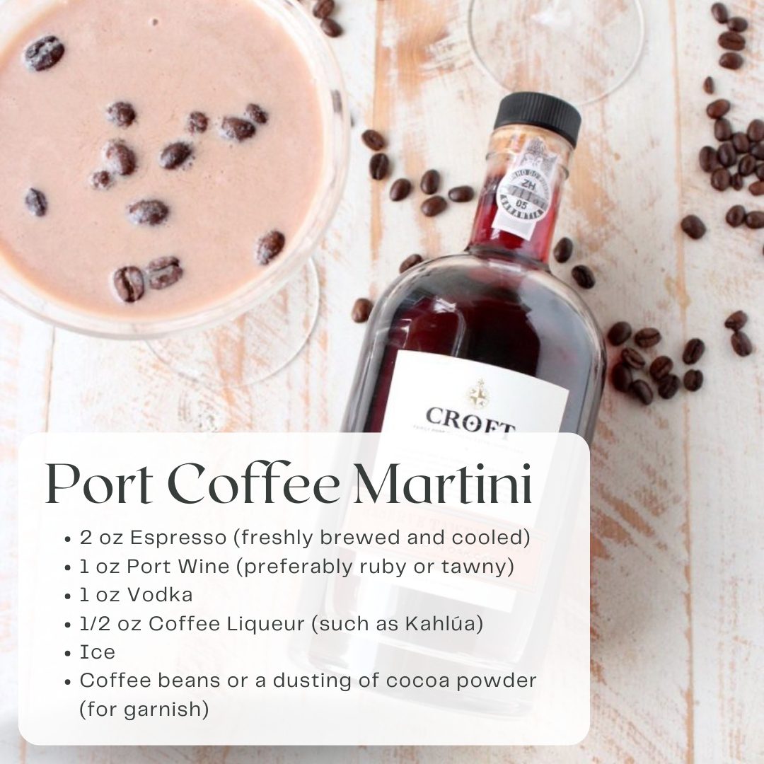 The Port Coffee Martini is perfect for holiday evenings or as a dessert cocktail, offering bold flavors and a touch of festive luxury.